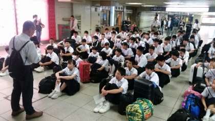 全員集合して、出発式を行いました。これから新幹線に乗ります。
