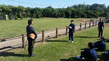 マリンスポーツ体験を終わり、挨拶をして、宿に向かいます。
