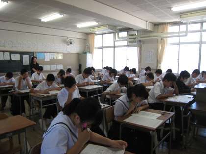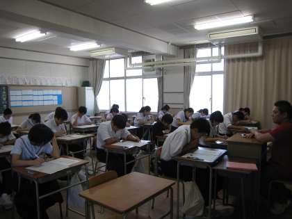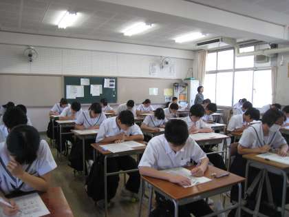 昨日に続き、2年生の中間テストです。今日が最終日です。写真は、英語のリスニングテストの場面を撮影しました。