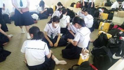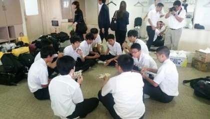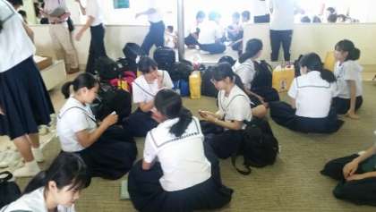 フェリー船内で、さっそくトランプで楽しんでいます。