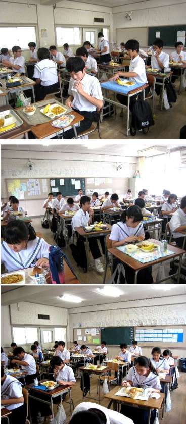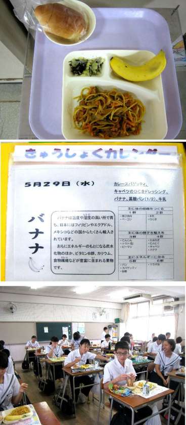 今日の献立は、黒糖パン、牛乳、カレースパゲッティ、キャベツのひじきドレッシング、バナナでした。