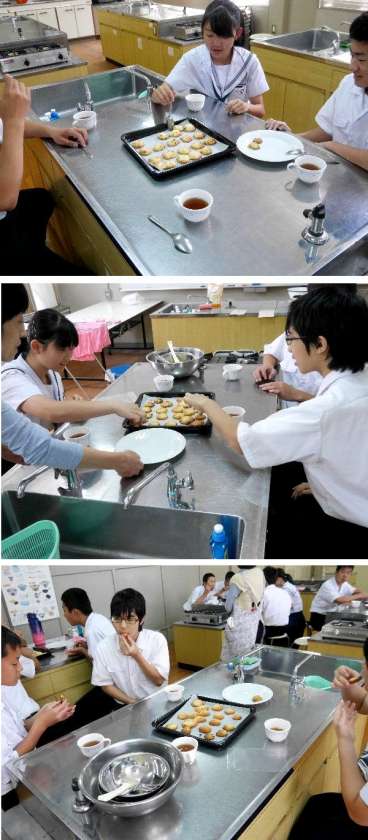 2年生の家庭科ではクッキーを焼く調理実習をしていました。紅茶もいれておいしくいただいていました。焼き立てはおいしいですね。