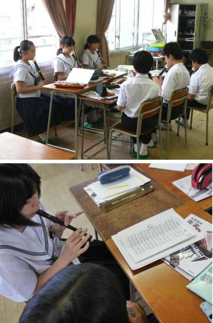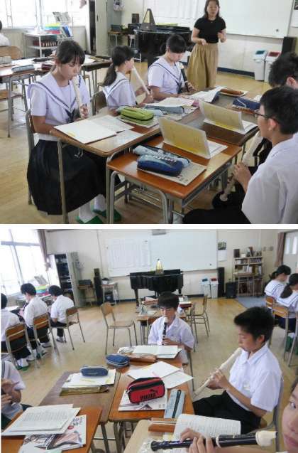 1年生の音楽の授業では、「よろこびの歌」をリコーダで合奏していました。