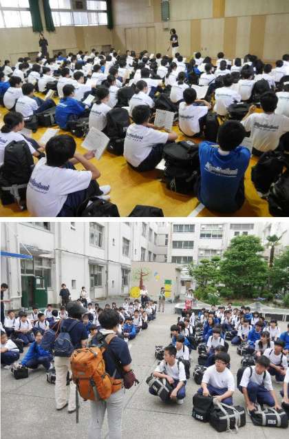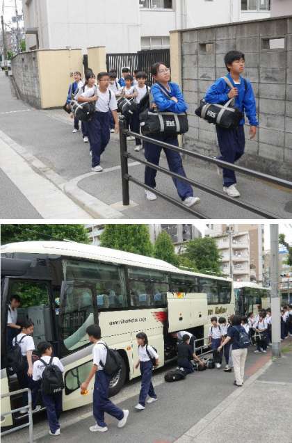 1年生は今日から、信太山青少年野外活動センターへ一泊移住にでかけます。1学年のスローガンは「全員スマイル 思い出に残る2日間を!」です。
