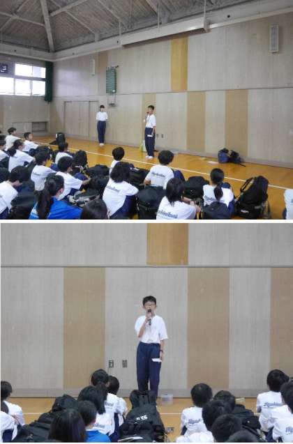 1年生95名全員が出席参加でき、出発式を行いました。出発式では学代から楽しんで行きたいと挨拶がありました。ルールやマナーを守って、お互いに助け合い、充実した宿泊行事になることを期待しています。