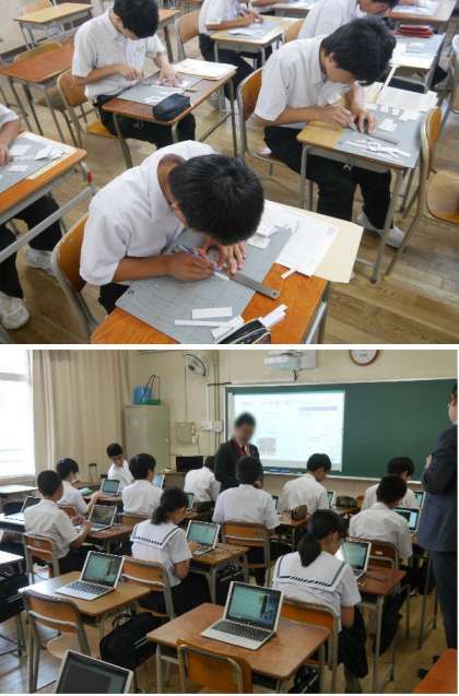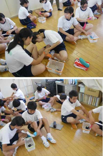高校体験出前授業では、建築模型づくり、ゲームプログラミング、テーピングトレーナー、マンガ・アニメ、幼稚園教諭・保育士体験に分かれて、出前授業をうけました。