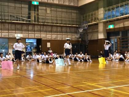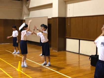 次は、モデル、頭の上にしおりを乗せて、ハイタッチ