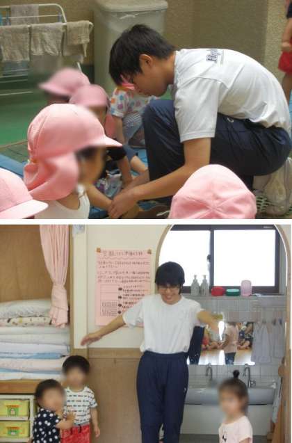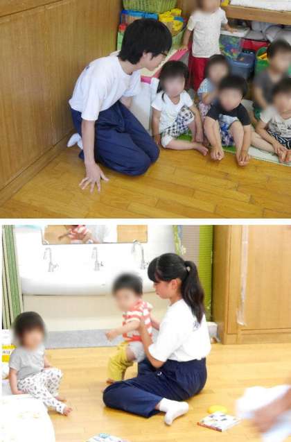 2年職業体験。新東三国保育園、みくにひじり幼稚園 の様子です。