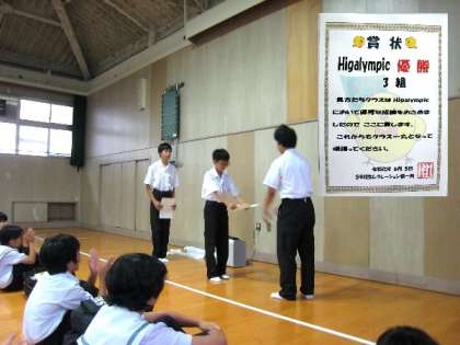 一泊移住のレクレーションで行った「ひがりんピック」の表彰が行われました。