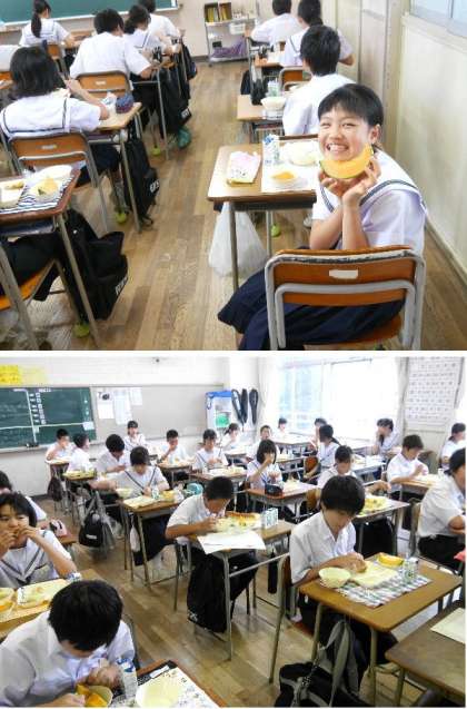 今日の給食!メロンが登場