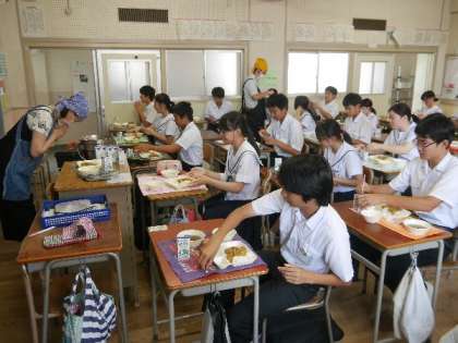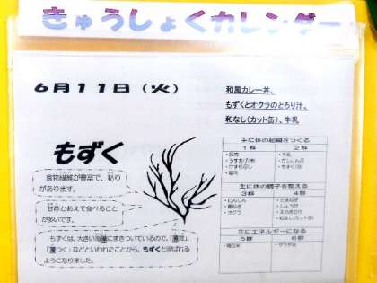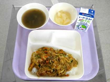 今日の献立は、和風カレー丼、牛乳、和梨(缶)、もずくとオクラのとろり汁です。おいしかったですね。