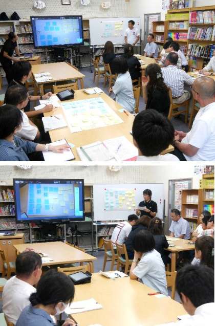 3学級で研究授業が行われ、放課後に、先生たちが集まって、それぞれの授業について検討する研究討議を行いました。