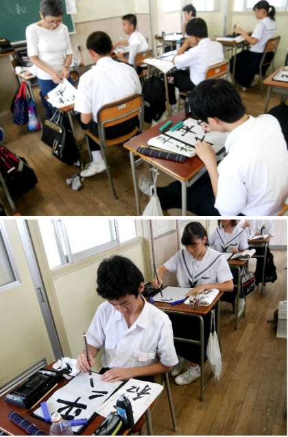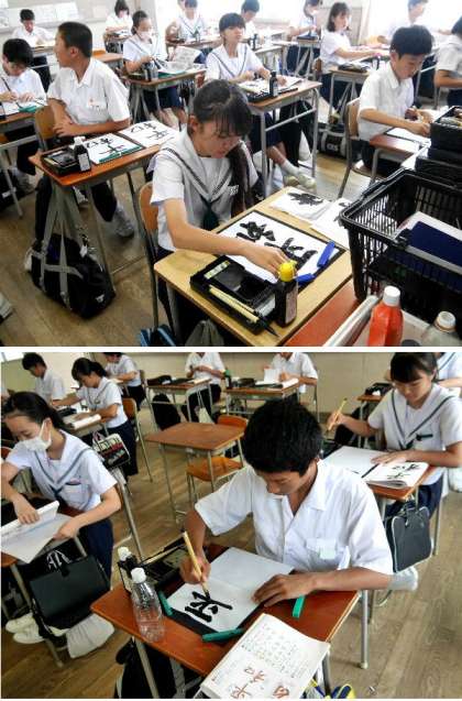 2年生の国語では書写をしています。「平和」を願って書きました。
