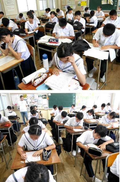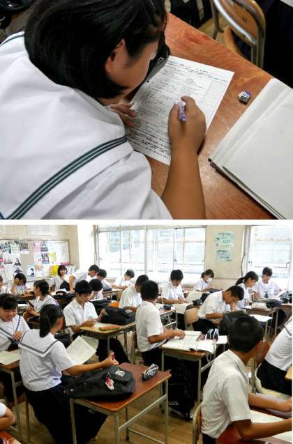 2学期の始業式まで1週間に迫った今日、3年生の登校日がありました。各教室では、宿題や提出物の進捗状況を確認していました。