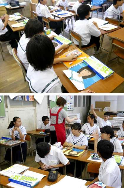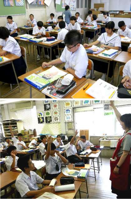 1年生の美術の授業です。夏休みの宿題の自画像をだしています。みんなよくできています。よく特徴をつかんでしあげていました。