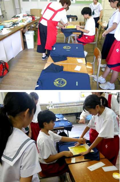 2学期もジュニアリーダが活躍する機会がたくさんあります。校庭キャンプやクリーンウォーク、地域の運動会、防災訓練などなどです。ジュニアリーダの活動で着用するTシャツにデザインを印刷して作っています。