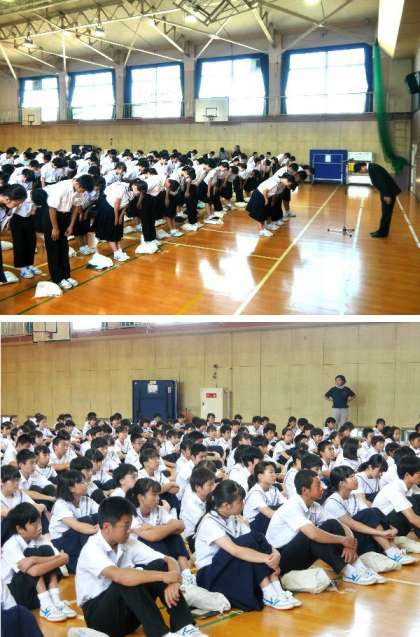 今日の全校集会では、来週から始まるラグビーワールドカップにちなんで、ラグビーの3つの精神についてお話しました。「フェアプレイの精神」「ノーサイドの精神」「自己犠牲の精神」です。正々堂々とベストを尽くす、お互いをたたえあう、一人はチーム全体のため、チームは一丸となって個人を支える。東三国中体育大会もそんな高い精神をめざしてほしいですね。また、これくらいいいや、あれくらいいいやと思わず、小さいことを大切にして、2学期の行事や日々の生活にとりくんでほしいと思います。
