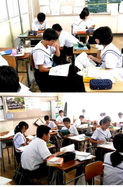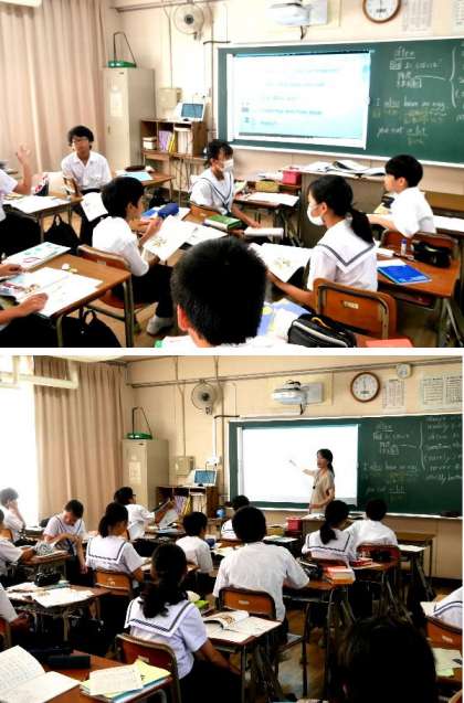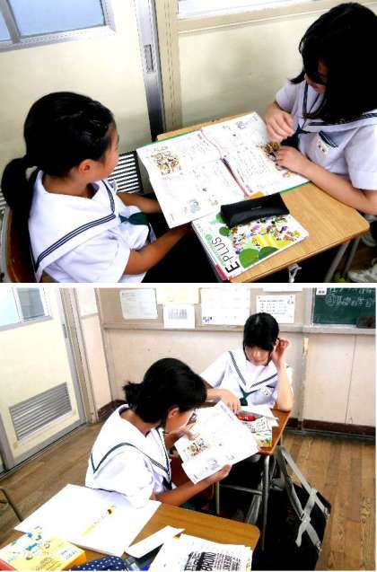 1年生の英語の授業では、ペアになって教科書をよみあっています。