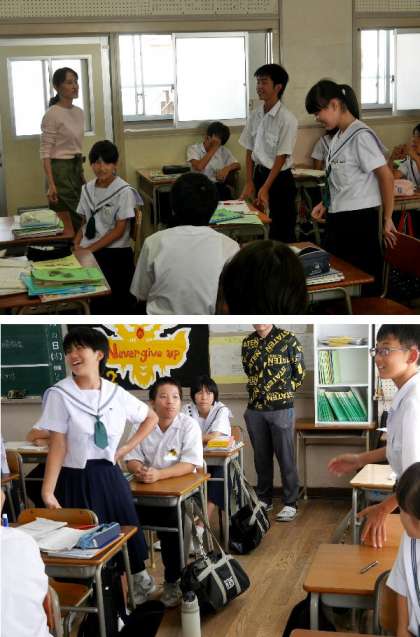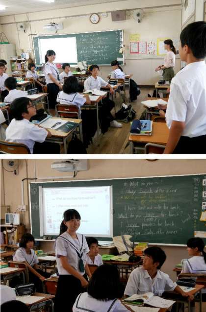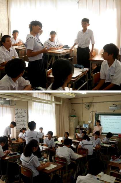 1年生の英語では教科書の会話を参考に、ペアになって発表していました。