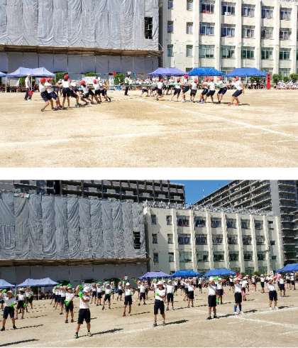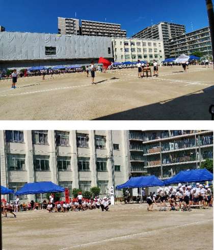台風の通過で延期となった校区の新東三国小学校の運動会が、さわやかな青空のもと、今日行われました。元気いっぱいに競技や演技をする小学生たちに癒されました。