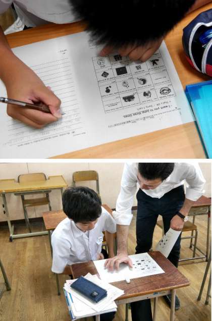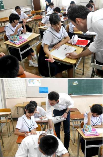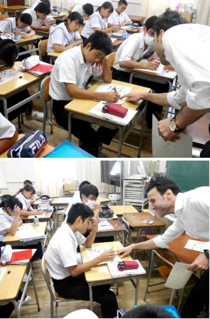 3年生の英語の授業では、ネイティブのC-NETの先生か、英文づくりに説明を英語でしてくれています。