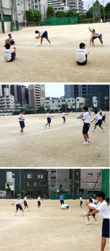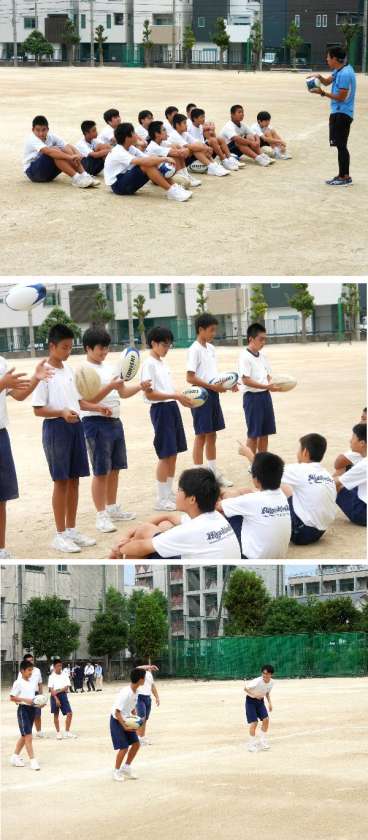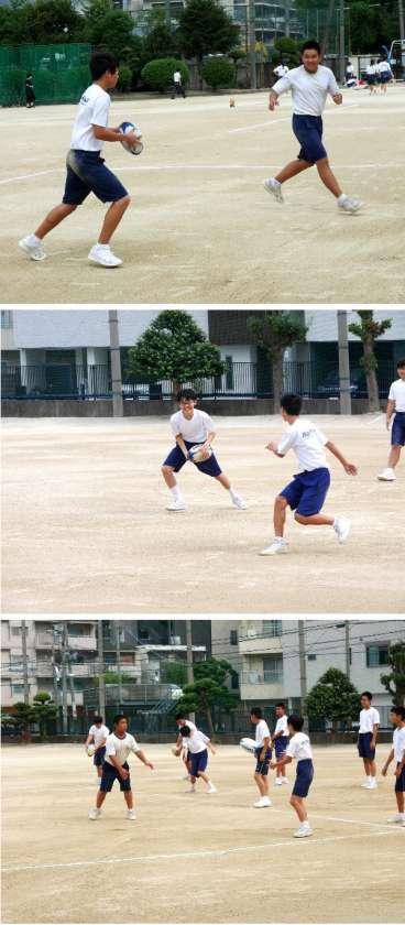ラグビーボールを上手にパス!2年体育