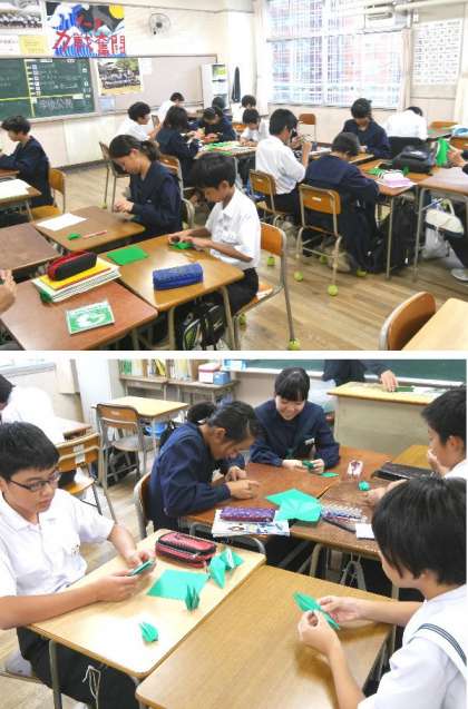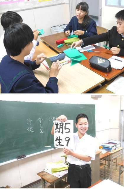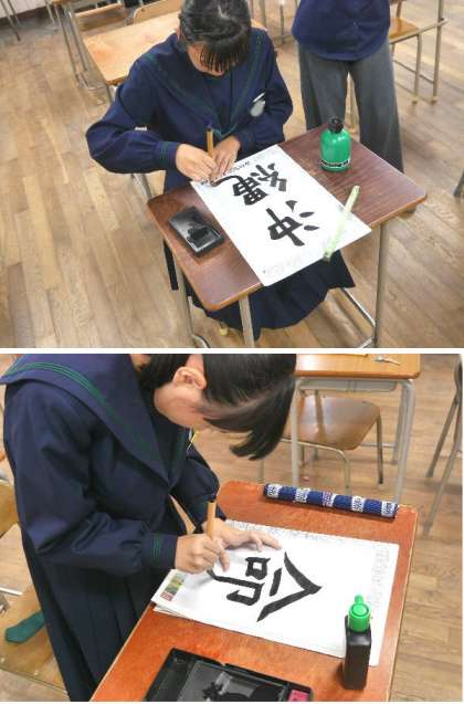 今日は授業のあと、文化発表会にむけて1年生は展示作品づくりの準備をしました。