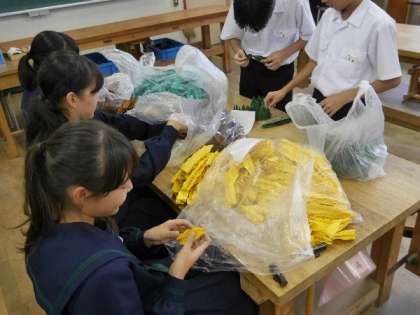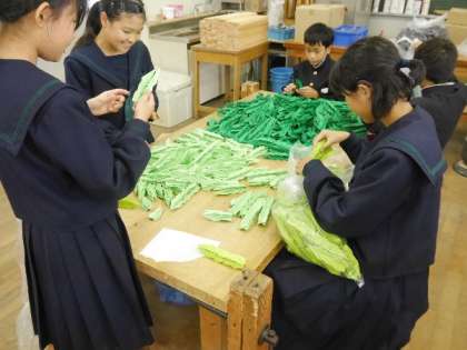 1年生の文化発表会の様子です。折り鶴もできあがってきました。