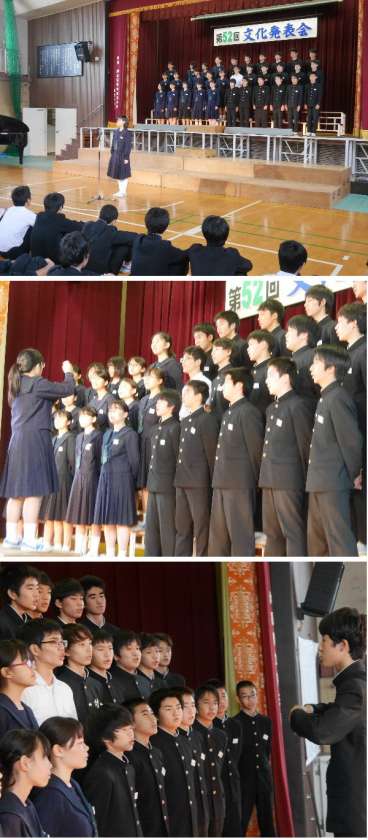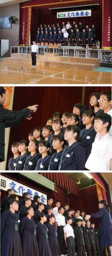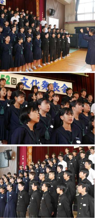 3年生は文化発表会での合唱の舞台練習をしました。とてもいい歌声が体育館内にひびきわたります。いよいよ中学校生活最後ですね。