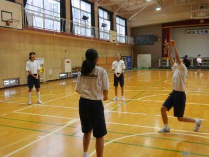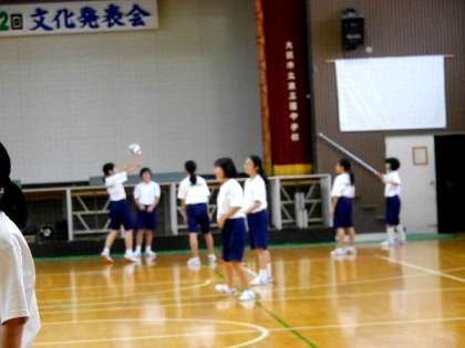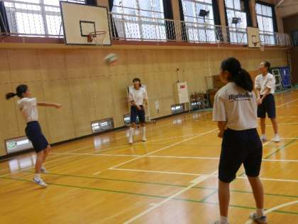 1年生の女子体育は体育館でバレーボールです。まっすぐにレシーブするのってむずかしいですね。