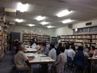 この説明会の後、引き続き「図書館活動ボランティア」がおこなわれ、図書本の整理や本棚の掃除などをお手伝いしていただきました。(画像右)