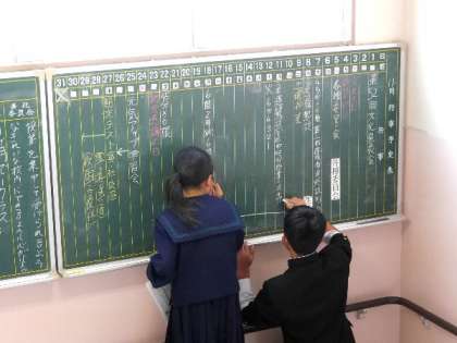 明日かか11月です。生徒会の生徒が行事予定表の黒板を書き直してくれています。