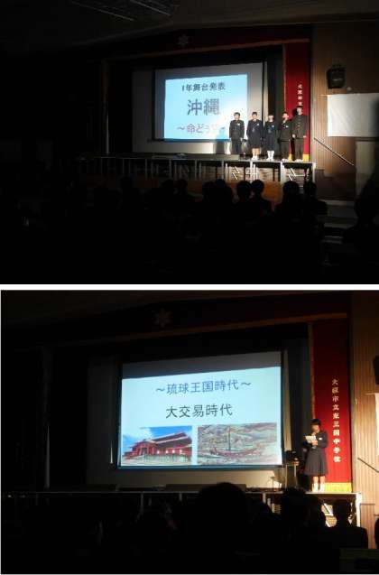 1年生の文化発表会は展示作品づくりです。沖縄について学んできたことを展示と舞台でも報告します。