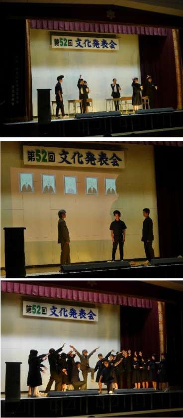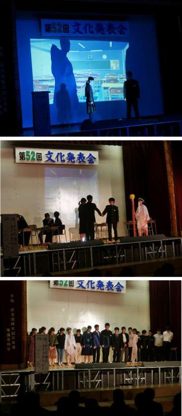 文化発表会の舞台の部の最初は2年生の学級劇です。どの学級もテンポよく笑いありのドラマでした。とても楽しむことができました。