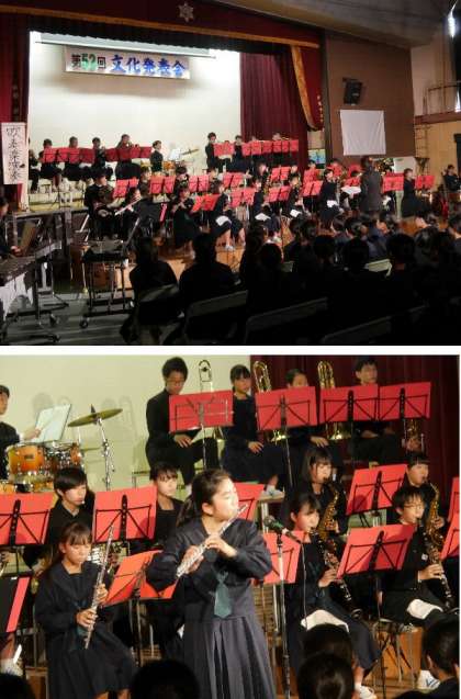 文化発表会の舞台最後の発表は吹奏楽部です。次々の新しい曲やなじみのある曲を迫力ある演奏を披露してくれました。