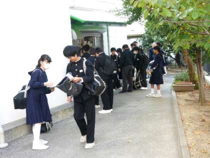 防寒着のウインドブレーカーの販売が今日と明日にあります。急に寒くってきて朝晩はひこみますね。11月から登校下校時に着用できます。