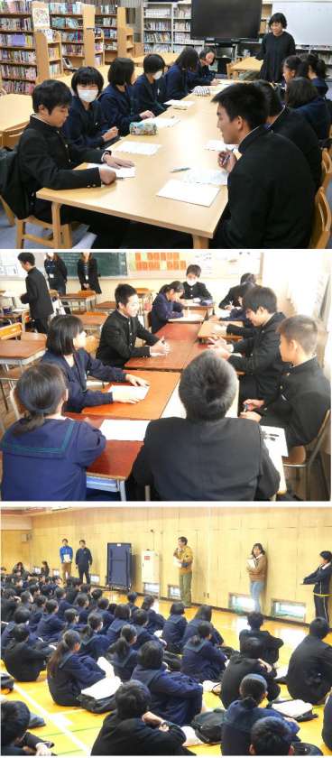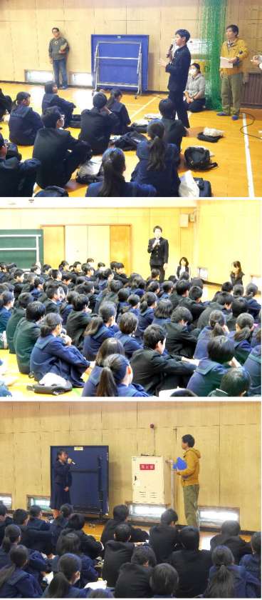 各町会ごとに、備蓄倉庫や公園で調べた事をまとめて、体育館で全体集合して発表し、最後に片山さんより講評をいただきました。お世話になりありがとうございました。初めての取り組みでしたが、同じ地域に住む人たちと学年をこて交流しあい防災について調べたり考えるよい機会とりました。