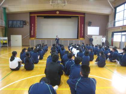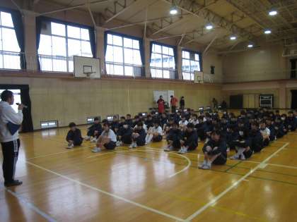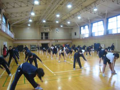 3年生では、球技大会が行われました。準備体操からはじまり、ゲーム開始。熱戦の火ぶたが切られました。みんなの声援が体育館いっぱいに広がり大いに盛り上がりました。
