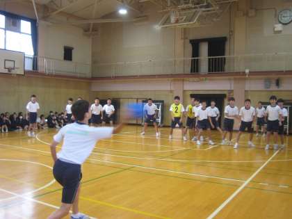 3年生では、球技大会が行われました。準備体操からはじまり、ゲーム開始。熱戦の火ぶたが切られました。みんなの声援が体育館いっぱいに広がり大いに盛り上がりました。