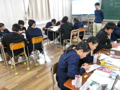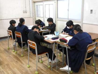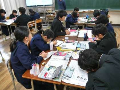 1年生の社会の授業では、グループになって対話しながら学習をすすめています。