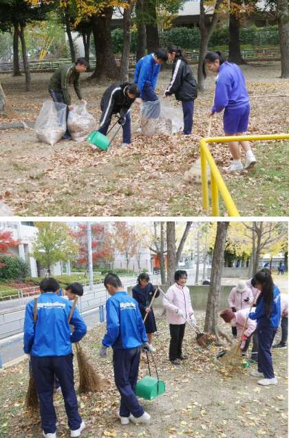 地域の方々と一緒に12年生が、いつも生徒たちも利用する地域の公園の清掃活動を行いました。