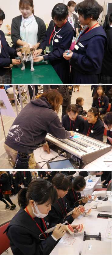動物看護士、コンサートスタッフ、歯科衛生士、保育士、大工、大阪府警、自衛隊、パテシエを体験しています。