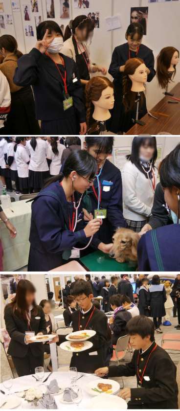 美容師、動物看護士、ホテル、ブライダル、ドッグトレーナの体験です。