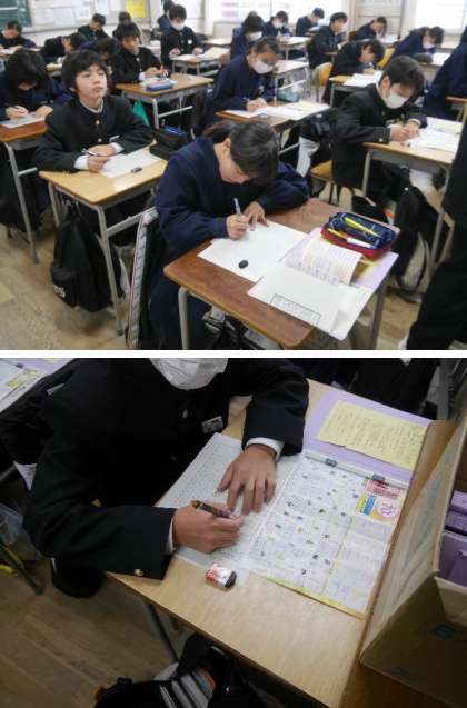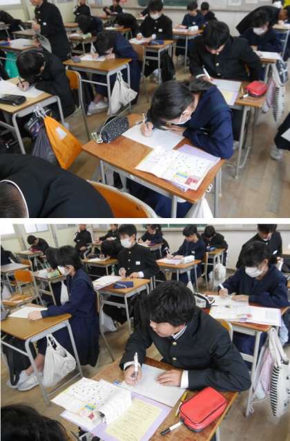1年生が学活で、昨日の職業体験セミナーをふりかさて、感じた事などを作文にしています。