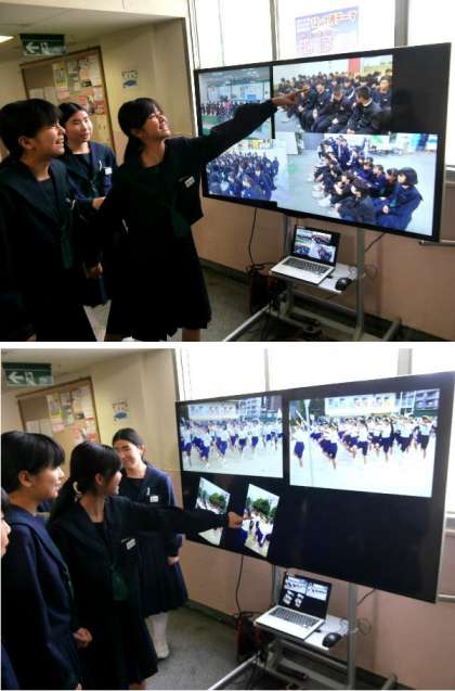 3年生は昨日から進路懇談が始まりました。1・2年生は今日から懇談です。2年生の廊下には、2学期の行事を紹介するモニターが置かれています。