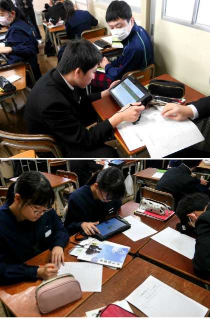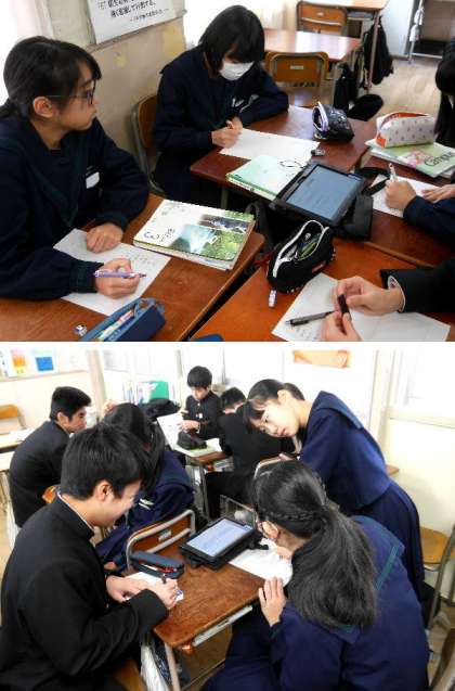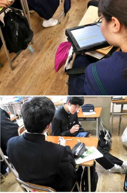 3年理科でタブレットを使って調べ学習をしています。環境問題について調べています。今とても話題になっている身近な問題ですね。しっかり考えていきましょう。