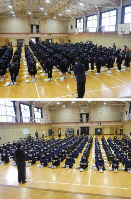 校長先生から、「1年の計は元旦にあり」「何ごとも、自ら求めていかなければ、道は開けない」「人生で最も大切なことは、できない理由を探さない」などのお話をしました。何事にもチャレンジし、多くの経験をつんで、強い心をつくって、この1年のスタートをきってほしいと思います。