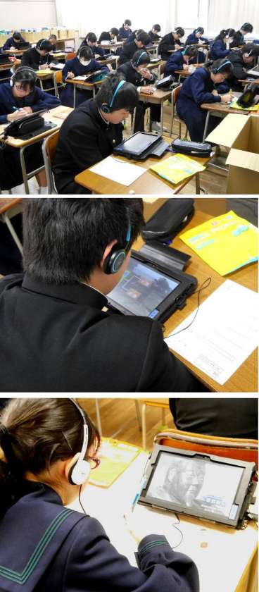 1年生が、一人ずつタブレットでNHKの学習ライブラリーの動画を見て歴史を学習しています。動画をみて学習したことを、プリントに整理してまとめています。時代は変わっていますね。最新式です。