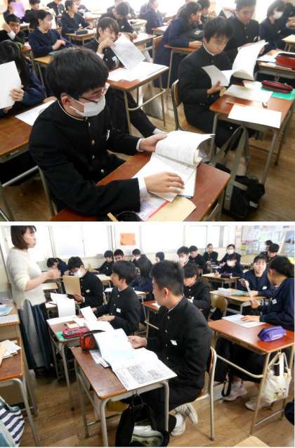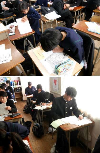 3年生は、私立高校等の進路先が決定し、願書の書き方を教えてもらって書いています。いよいよ進路決定にむけて動いています。あと3か月で卒業ですね。