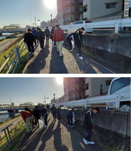成人式の今日、東三国中学校のジュニアリーダーたちが、新東三国地域のクリーンウォークに参加し、地域の方々とともに、ごみひろいをして清掃活動を行いました。